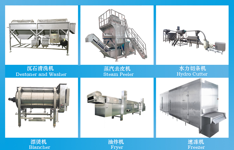 我公司生產(chǎn)的1-2噸法式薯條生產(chǎn)線是一套高度集成且精細化的設備組合,旨在快速地將土豆加工成備受喜愛的法式薯條,滿足市場對這一經(jīng)典美食的大量需求。該薯條線的設計工藝完全按照歐洲法式薯條的制作工藝和流程為標準進行設計,達到了歐洲工藝和質(zhì)量標準。主要由清洗設備、蒸汽去皮設備、水力切條設備、漂燙設備、脫水設備、油炸設備、速凍設備、包裝設備等組成。
